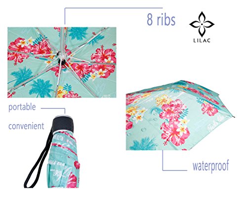 -. Title : LILAC Tropical Flower Travel Umbrella, Manual Open & Close, Compact Umbrella