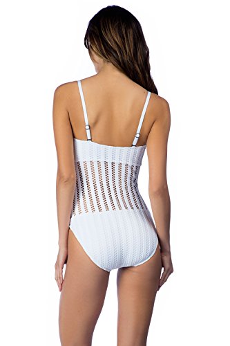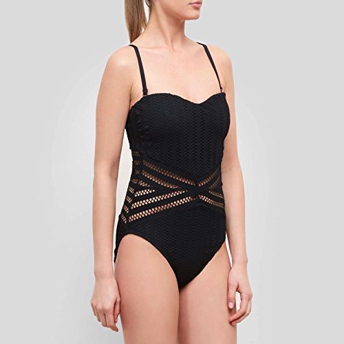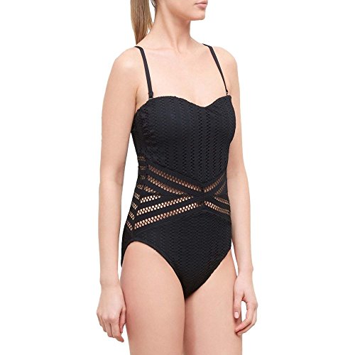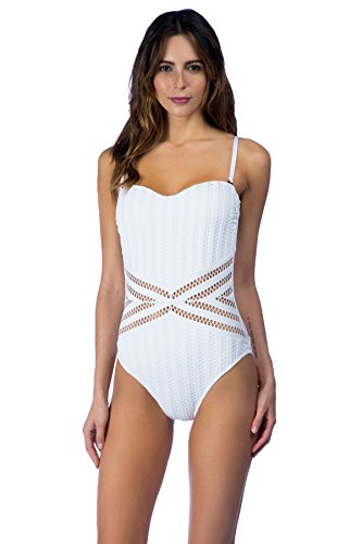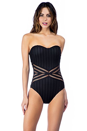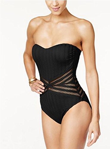 Product DescriptionTough luxe crochet stripe bandeau mio one piece swimsuit solid colored with inset waist detailing0