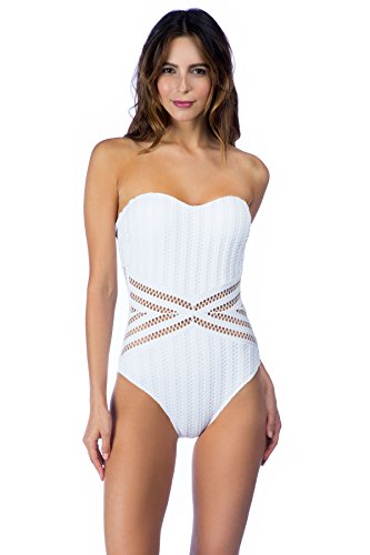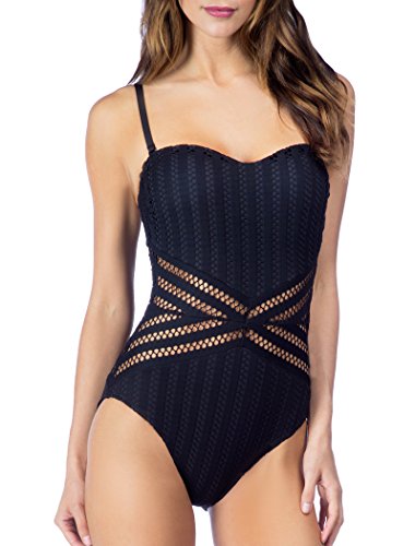 Kenneth Cole New York Women's Tough Luxe Crochet Stripe Bandeau Mio Swimsuit