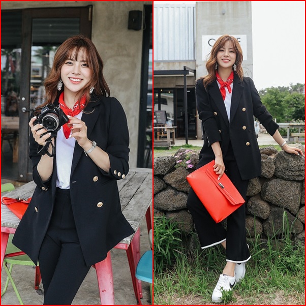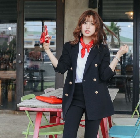 金ボタンのダブルブレストジャケット