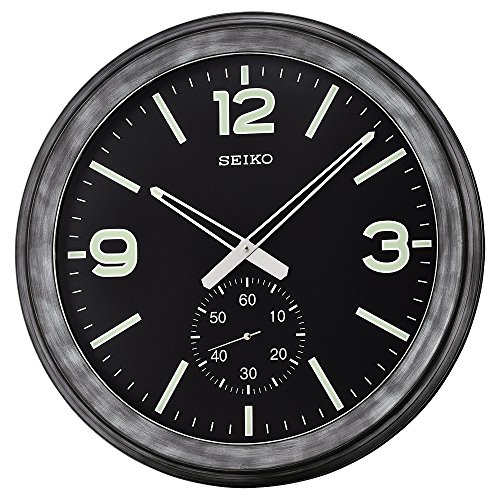 Modern design elements and smart features make the Seiko Black Modern Wall Clock with Subdial - 20 in. diam. an elegant choice for your home office or living space. Its plastic case features an antique black finish that’s a chic complement to the hands, numerals, and markers, which all illuminate in the dark. A seconds subdial completes the design. You’ll need to add two AA batteries. Over its 120 year history as a maker of fine timepieces, the Seiko name has become synonymous with cutting edge technology, ultra-precision, constant innovation and refinement. Millions worldwide rely on Seiko wristwatches to keep them on schedule. Two generations have grown up thrilling to Olympic and World Cup competitions where victory or defeat is defined within a fraction of a second, all overseen by Seiko timekeepers. Dimensions: 20 diam. in.. Plastic case with antique black finish. Luminous hands, numerals, and markers. Seconds subdial. Requires 2 AA batteries (not included).Feature