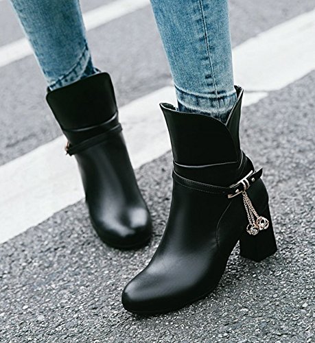 Binding : Apparel Product Description This pair of shoes is for women, girls, young ladies and office workers. You will look elegant and sexy when wearing them. The heels measure 2.6 inches. You will look slimmer and slender in their mid heels. Its platform is about 2.6 inches. So you will not feel too tired when walking with them. This pair of shoes features pull on closure and ankle high. You will look sweet in their round toe. The decoration of pendant will offer you a chic look. The sole is made of good rubber. You will feel comfortable in their soft bottom. They are of high quality and durable. Come on and take them away! 0