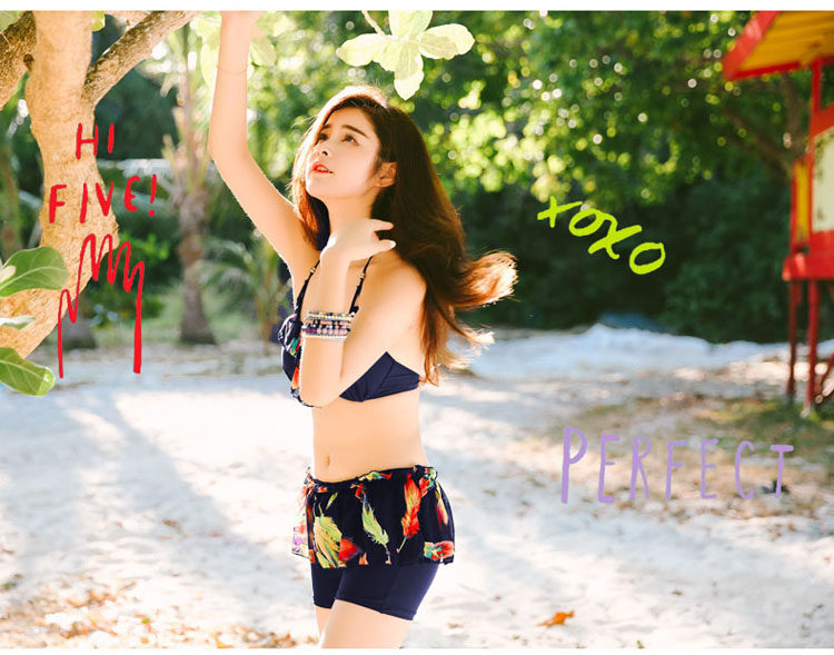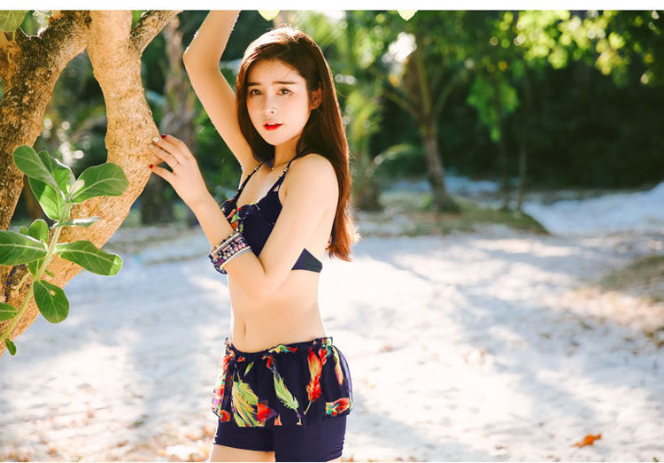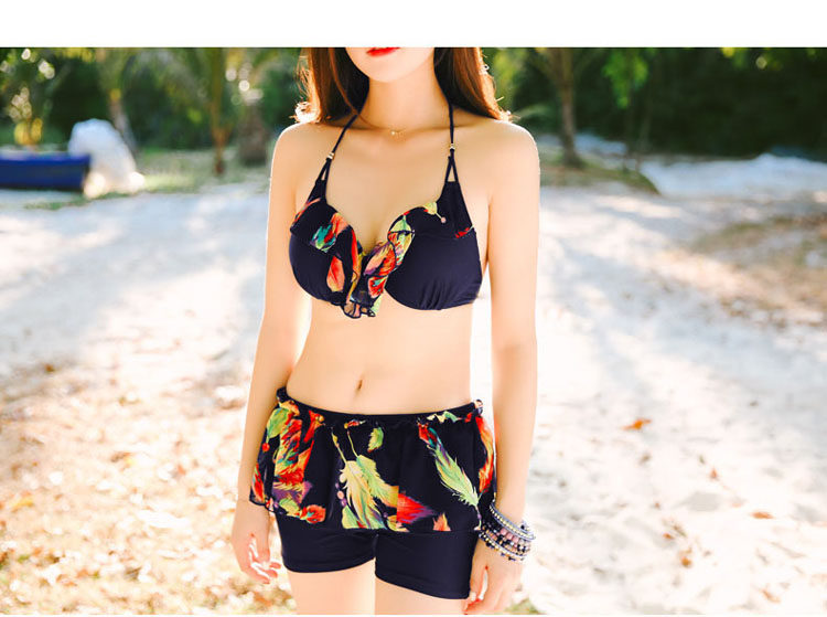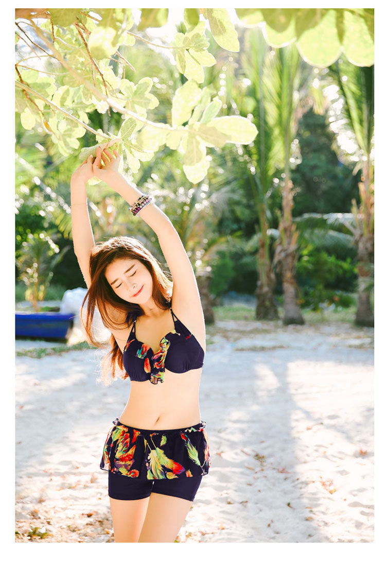 游泳衣女分体裙式比基尼三四件套小胸钢托聚拢性感保守平角泳衣装