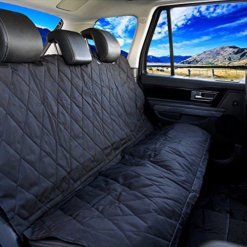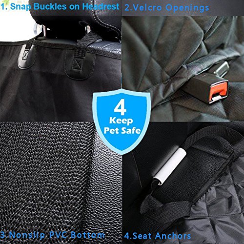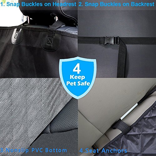 -. Feature : Protect Your Seats: When your dog brings dirt, mud, hair and other debris into your vehicle it tends to take its toll on your seats. Keep your best friend comfortable and your car seats free of odors, stains, claw damage and other pet related harms / Black & Hammock Convertible: 57" x 61" Designed for the backseats of most cars, trucks, & SUVs. Easily convertible between hammock or bench. This dog car travel accessories is just what's needed for your dog to feel safe & secured on the no-slip dog seat cover so, you focus on driving. Bench section is padded & quilted for comfort / Eco-friendly Fabric: Our waterproof material is FREE OF AZO DYES and HEAVY METALS like Lead, Arsenic, Mercury. NO pungent odor! / Nonslip Material Keeps the Cover in Place: You will find rubberized mesh on the backside that helps create a high friction grip to any seat / Easy to Install & Clean: Very easy to install with quick release clips. Seat anchor can insert to the crevice to fasten the cover, 4 sets of adjustable plastic clips that attach around the headrest in the front and the back to fix cover firmly. Made with high quality heavy-duty waterproof polyester, easy to clean with a damp cloth or just vacuum