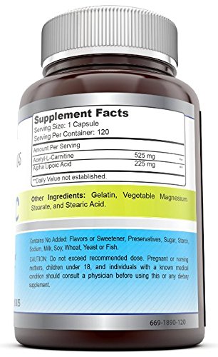 - Title : Amazing Nutrition Ala/alc (Acetyl L-carnitine 525 Mg / Alpha Lipoic Acid 225 Mg) 750 Mg 120 Capsules - Support Your Vital Metabolic Functions - Supports the Immune System and Healthy Liver Function