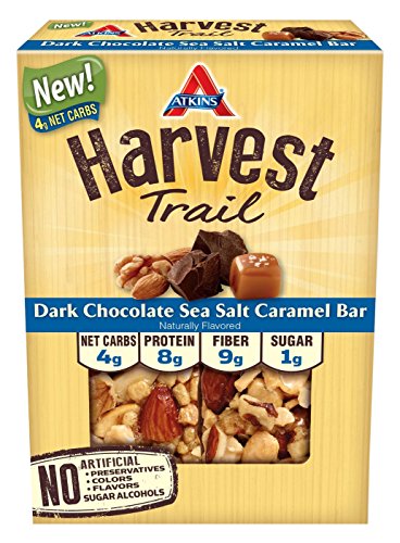 -. Title : Atkins Harvest Trail Bar, Dark Chocolate Nuts Sea Salt Caramel, Gluten Free, 5 Bars