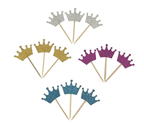 Glitter Crown Cupcake Toppers, Perfect Cake Decoration (80 Pack, 4 Colors) These glitter crown cupcake toppers are perfect choice for cake decorations of wedding, birthday, baby shower, graduation, etc. They can be as party food picks, christmas cupcake picks, cocktail picks and more. Specifications: Shape : Glitter Crown Color : Gold, silver, blue and purple Diameter : 3.15 x 1.77 inches / 8 x 4.5 cm Material : Made up of toothpick and glitter paper Package: 80 pcs cupcake toppers 0