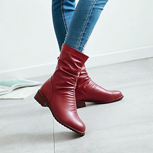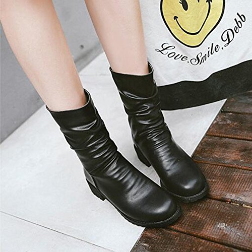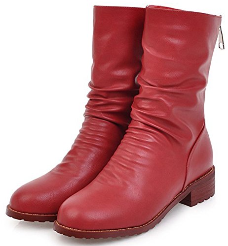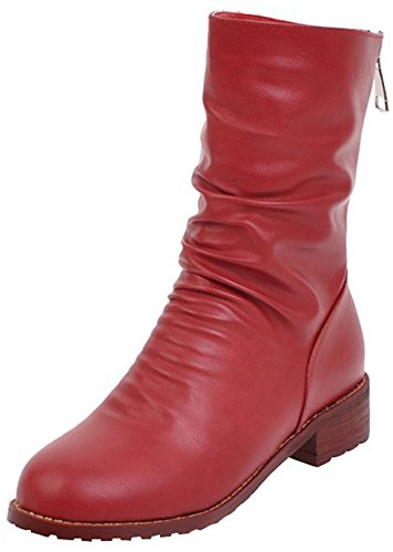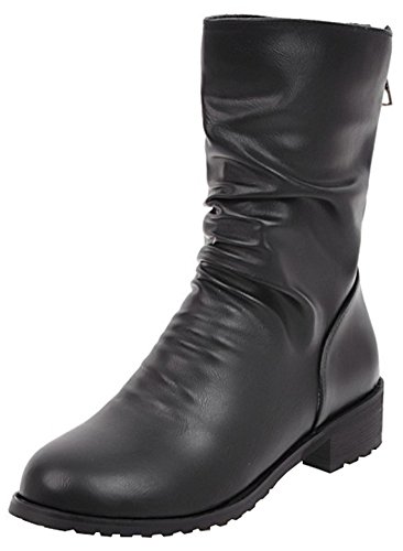 (Mofri)/Women's/Boots/DIRECT FROM USA/Mofri Women's Casual Block Low Heel Round Toe Back Zipper Slouchy Mid Calf Boots