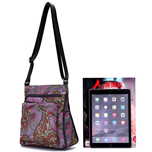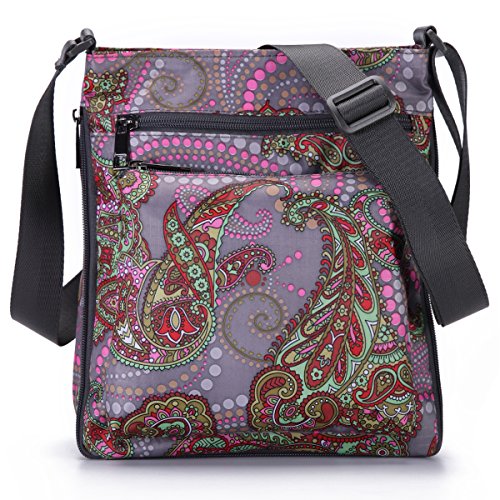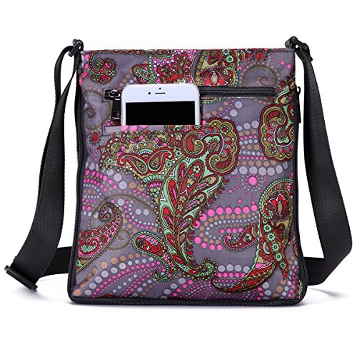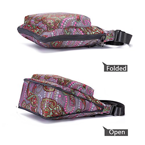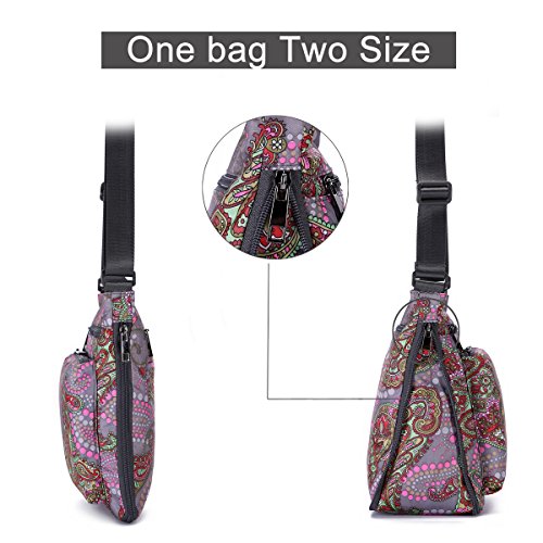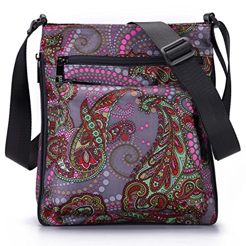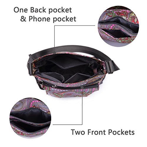 -- Material: durable floral nylon and water-resistant lining.