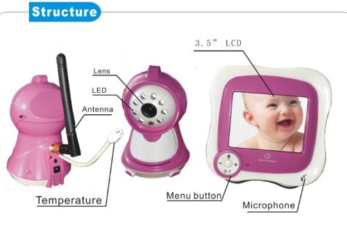 -. Binding : Baby Product -. Brand : TR SOLAR -. Color : Pink -. EAN : 0695627910209 -. Feature : Digital RF modulation with frequency hopping; Data P.R.Ivacy protect (support user ID recognition); With high resolution 3.5" LCD display screen / Dynamically select clean channels to avoid interference from other 2.4 GHz devices;Bidirectional transmission and support data encrypt; Night vision(Effective range: 5m) / Baby camera with temperature detection function and real-time display in the LCD monitor / Support music player, eg: play sleeping music to help baby go to sleep / Built-in microphone in camera & speaker in receiver; Up to 300m (990ft) transmission range in open space -. Label : TR SOLAR -. Manufacturer : TR SOLAR -. Model : TR-830S -. PackageQuantity : 1 -. ProductGroup : Baby Product -. ProductTypeName : BABY_PRODUCT -. Publisher : TR SOLAR -. Studio : TR SOLAR -. Title : 3.5" Wireless Digital Baby Monitor IR Video Talk one Camera Night Vision video / Baby Monitor-Pink -. UPC : 695627910209