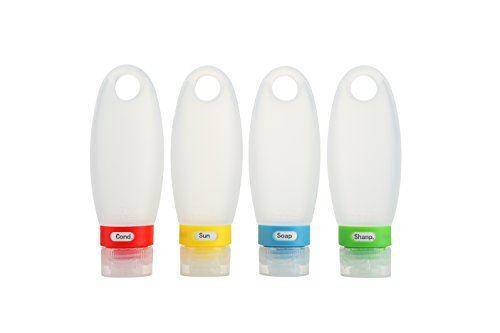 -. Title : Large Leak Proof Travel Bottles. Set of Four 3.3 oz TSA Approved Refillable Squeezable Silicone Bottles with Clear EVA Toiletry Case