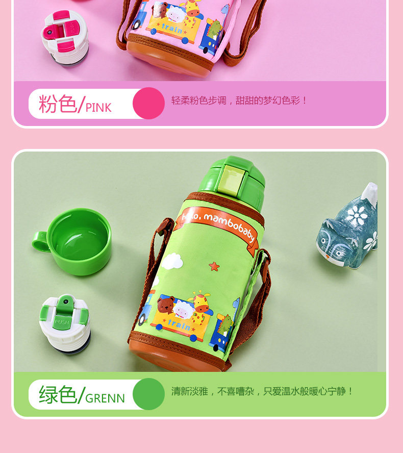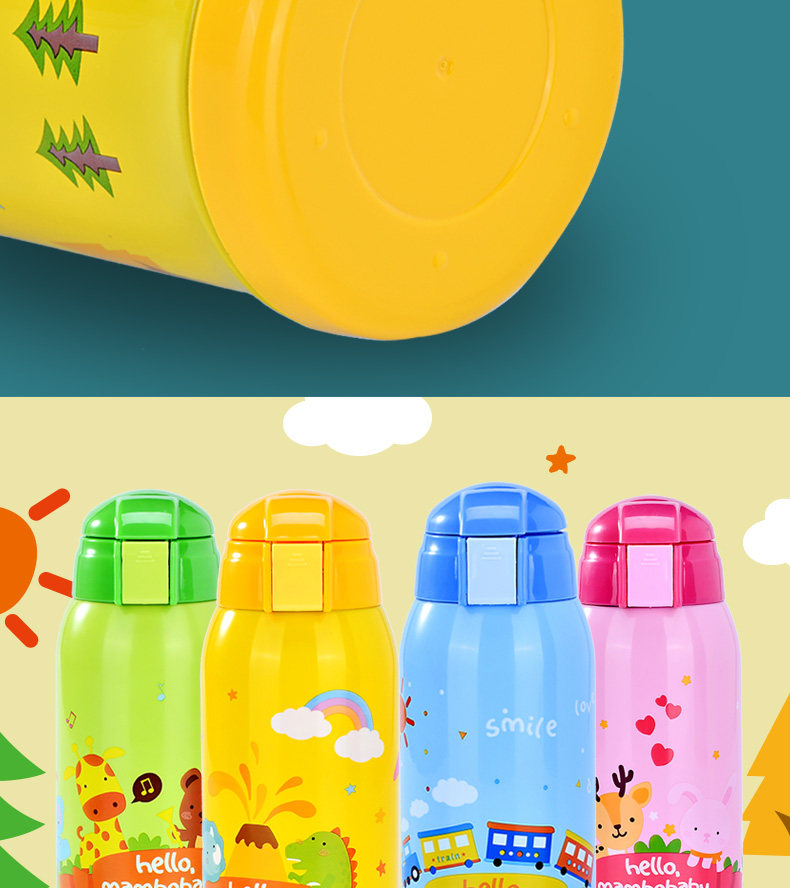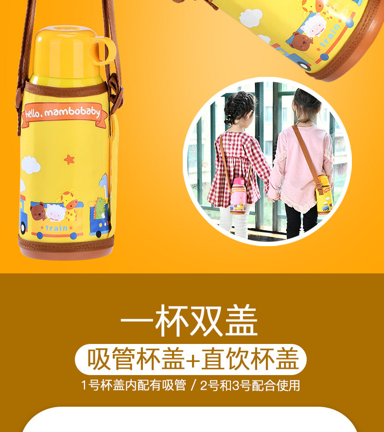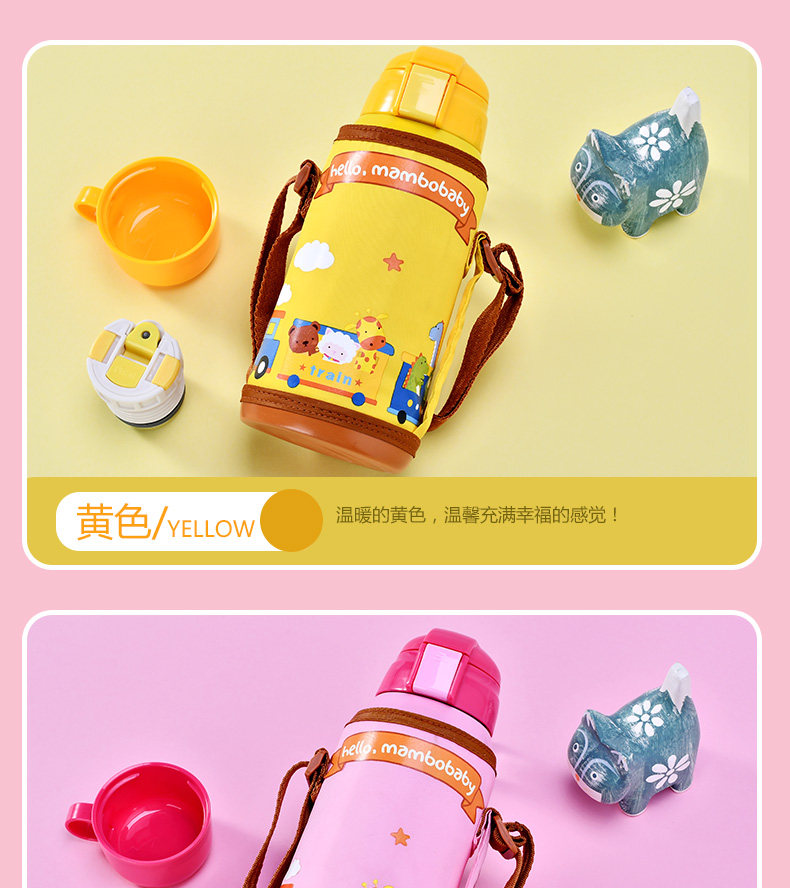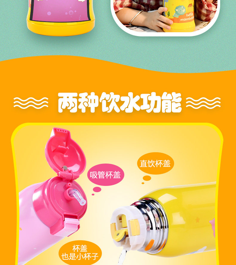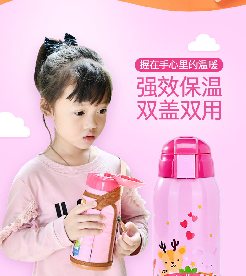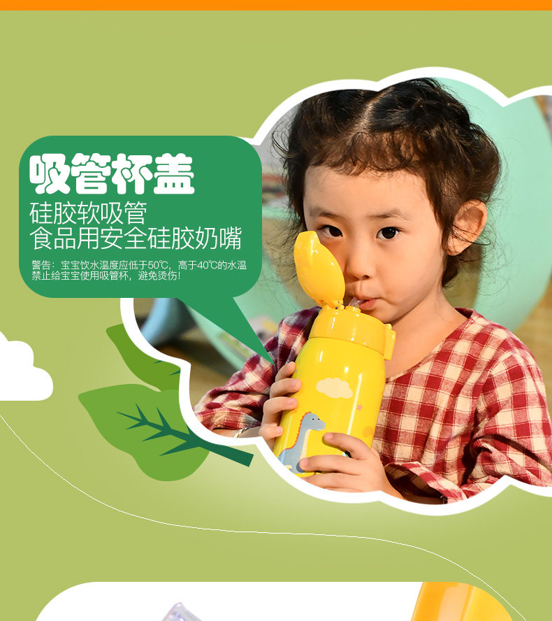 儿童保温杯子带吸管宝宝水壶便携学生水杯不锈钢卡通水杯防漏