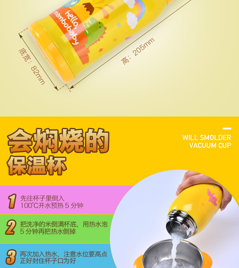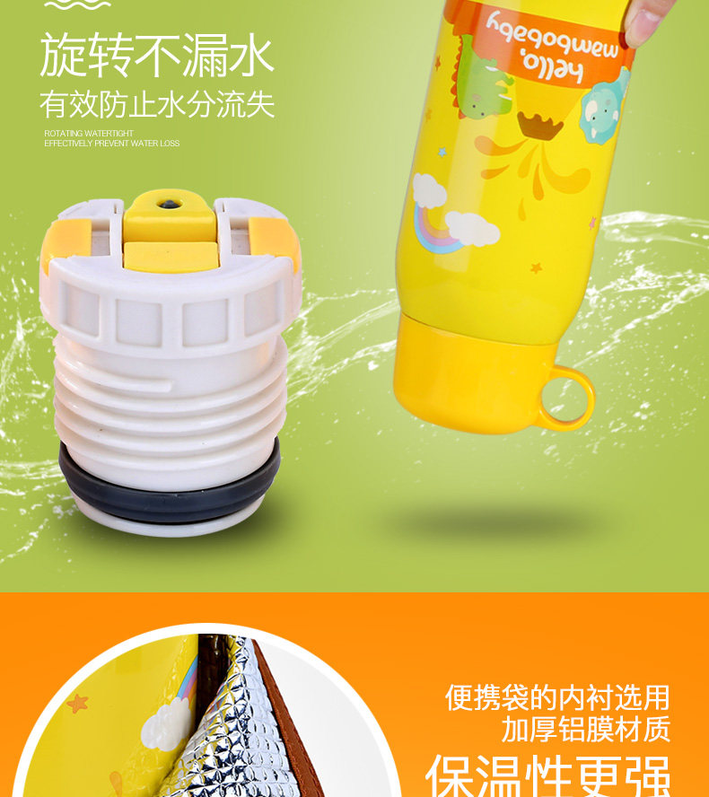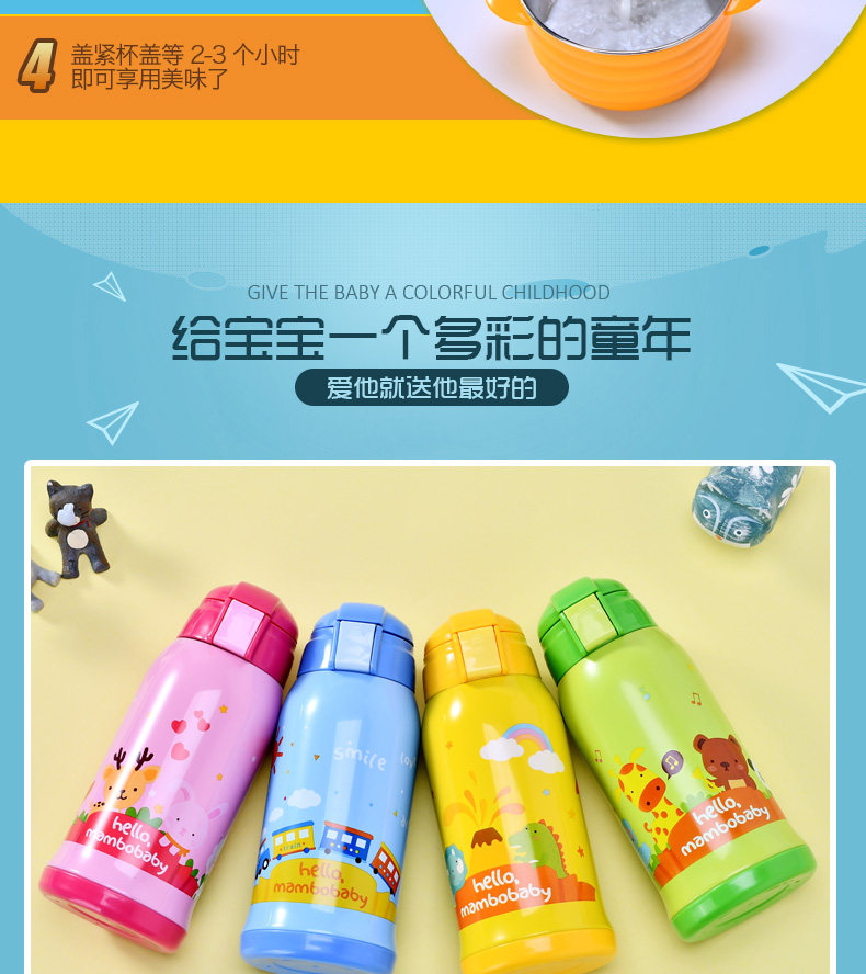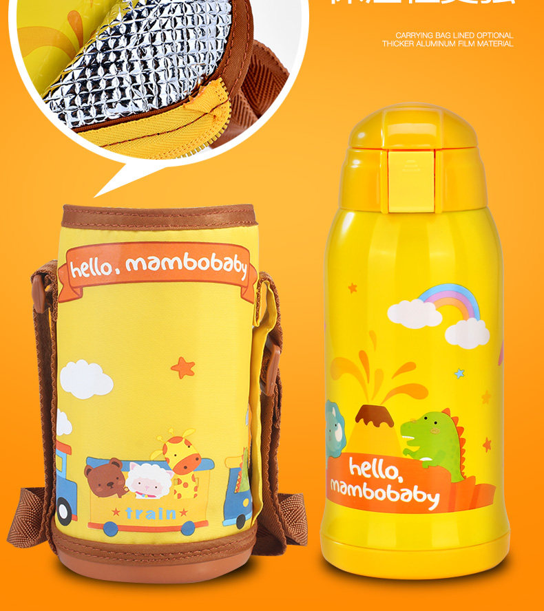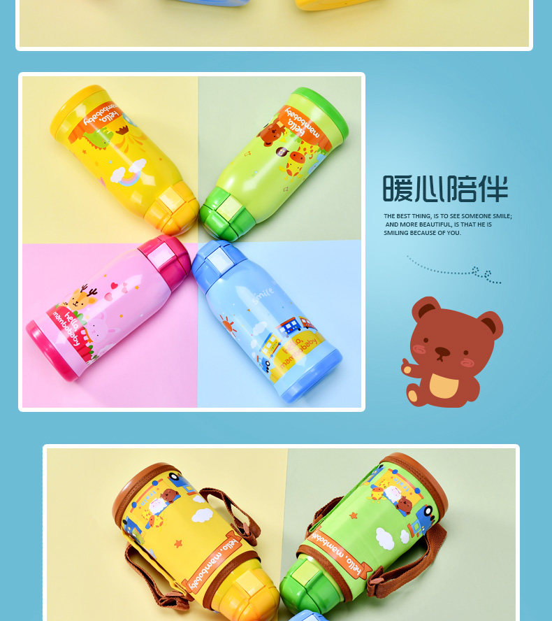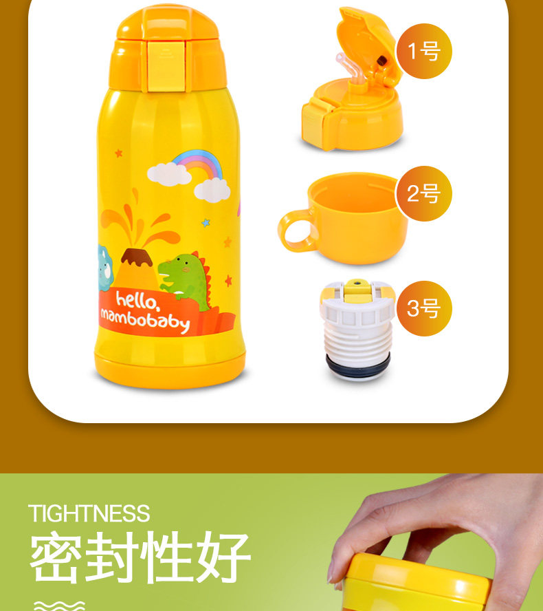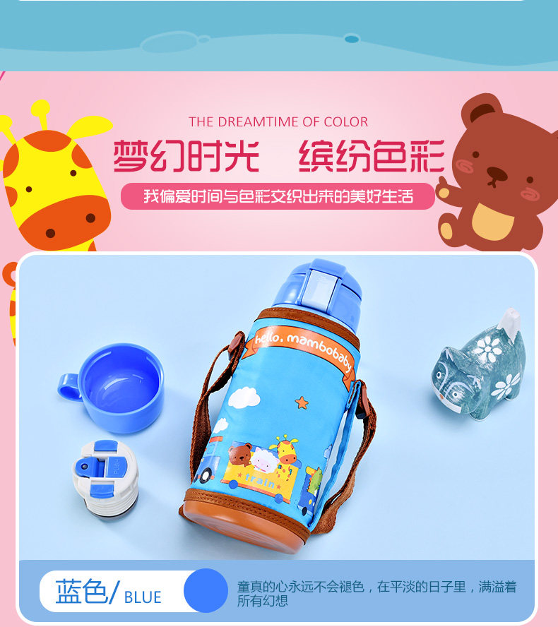 儿童保温杯子带吸管宝宝水壶便携学生水杯不锈钢卡通水杯防漏