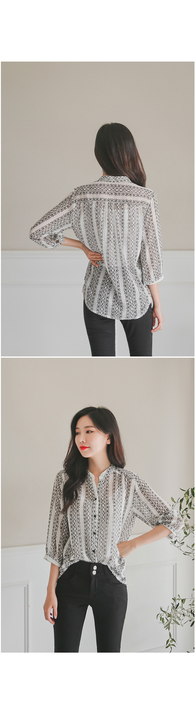 # ls8324 카렌 나염반오픈블라우스