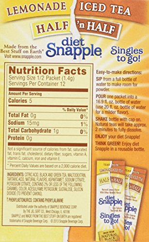 -. Title : Snapple Half Lemonade n Half Iced Tea Singles to Go - 3 Boxes - 6 Packets Each