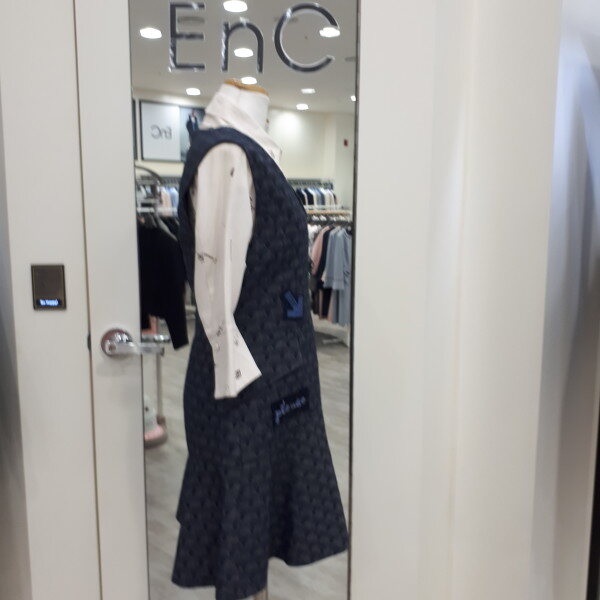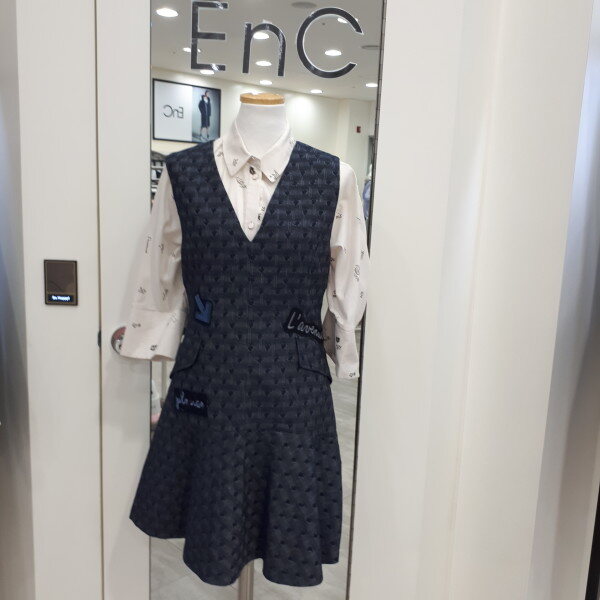 와펜 포인트가 넘예쁜 인어라인 원피스입니다네이비톤과 색감과 밑단선 인어라인이 여성스러움과 S라인의 몸매를 극대화해줍니다
