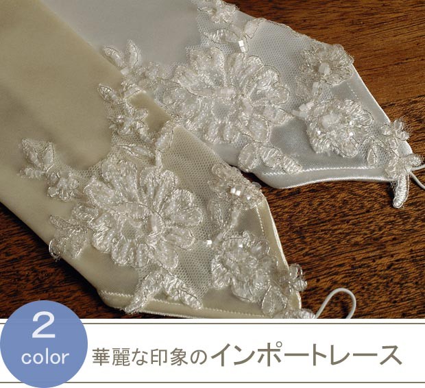 | グローブの生地やレースは繊細なものですので、場合によっては少しのひっかかりなどでも、糸ひけなどが発生する場合もございます。お取り扱いに気をつけてください。 |