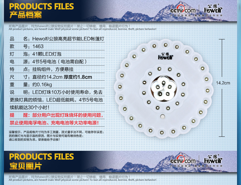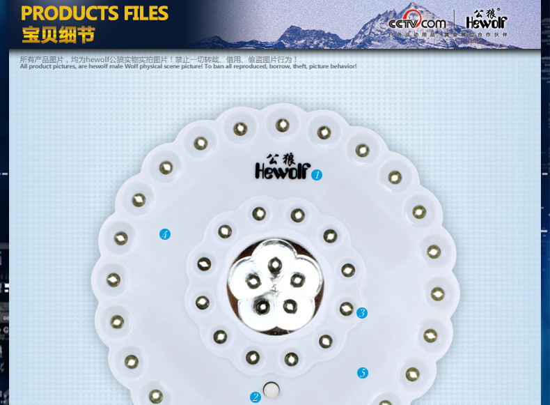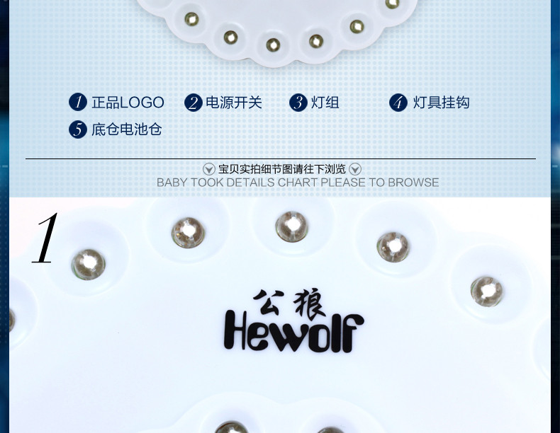 Description: LED lamp beads life of 100,000 hours, which eliminates the trouble replacing the lamp, LED ultra-low power, 4 5, battery life can be up to 30 hours!