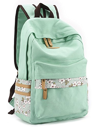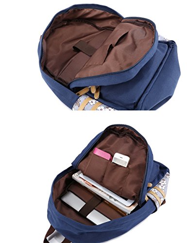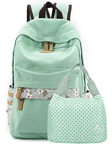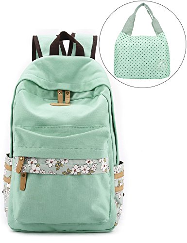 Leaper Casual Canvas Laptop Backpack School Bag + Lunch Bag (2PCS, Water Blue)