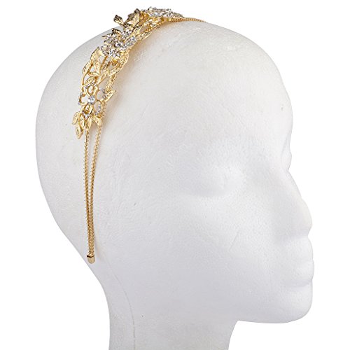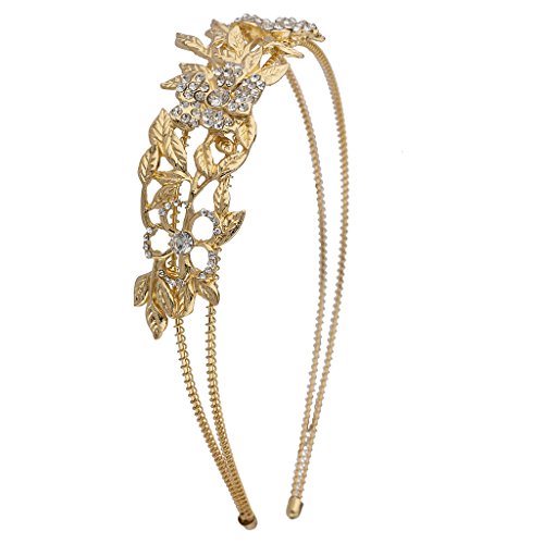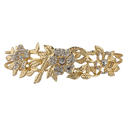 Lux Accessories Goldtone Flower and Leaves Casted Bride Bridal Hard Headband