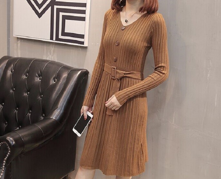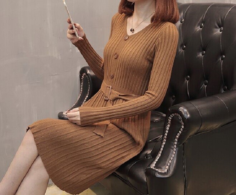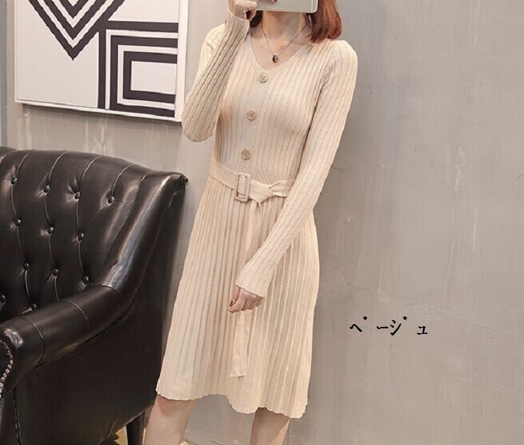 商品説明素材:綿/ポリエステルカラー:ベージュ、ブラウン、キャメル、ブラックサイズ:フリー(約) 着丈/肩幅/バスト/袖丈 ()単位:(cm) オススメの体重範囲 単位:(kg) 97/37/88/59 40-68エレガント レディース ニットワンピース きれいめ オシャレVネック 膝丈ベルト付き ニット セーター 着痩せAライン ワンピース 春秋冬 着回し率高いの一枚ワンピース!楽しい 4色からお選べる!