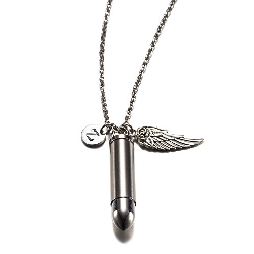 -. Title : Large Bullet Angel Wing Charm InitialNecklace Cremation Jewelry Keepsake Pendant Memorial by AMIST