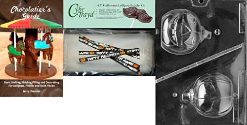 Cybrtrayd "Solid Hollow Pumpkin" Chocolate Mold with Chocolatier's Bundle, Includes 50 Cello Bags and 50 Happy Halloween Twist Ties