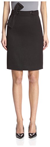 Woven wool pencil skirt with front grommet detail and thread-through belt, hidden back zipper and full lining