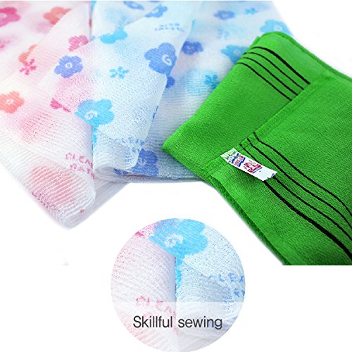 Easy to scrub the dead skin cells with rough surface. Make your skin to be soften and feel fresh by remove the dead skin cells without stimulating your skin compared to normal body wash towel Specially woven from nylon BCF massage your skin softly, and removes the dead skin cells effectively. Keep original shape even be used for a long time and hygiene as dry fast.