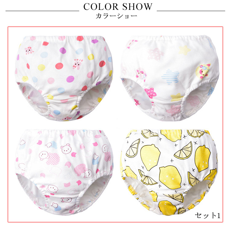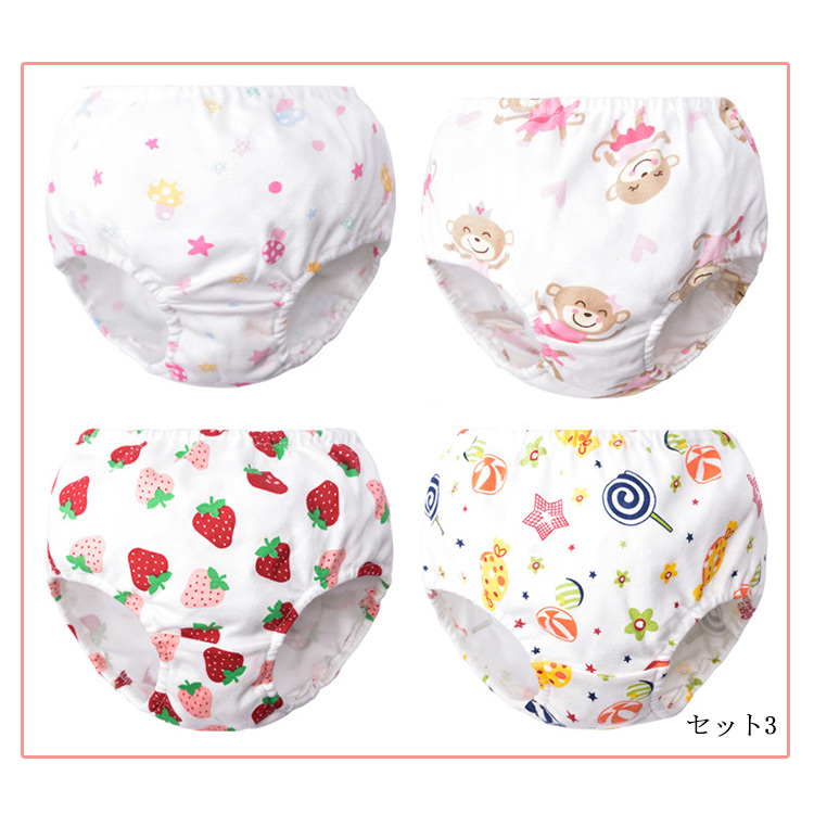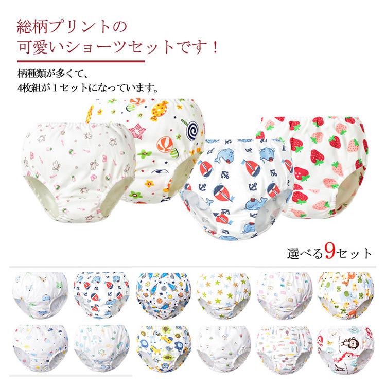 | 総柄プリントの可愛いショーツセットです!柄種類が多くて、4枚組が1セットになっています。女の子のオシャレ心がときめくプリントで、見えないところまでオシャレ!!ディリー使いに欠かせないものとして、何枚持っても◎ | |
