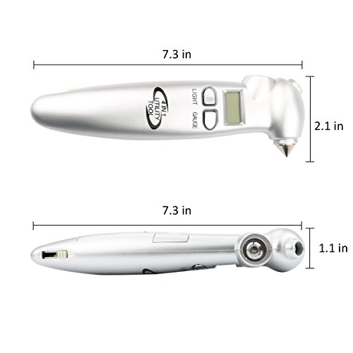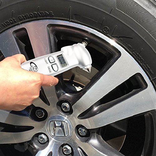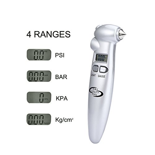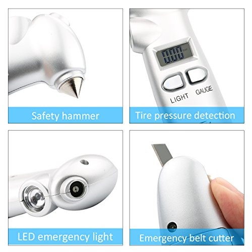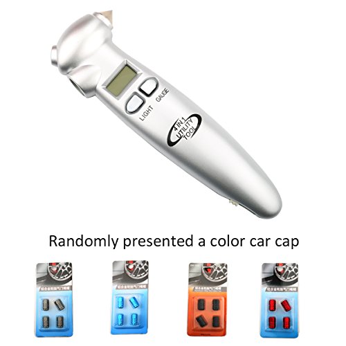 Digital Tire Pressure Gauge,150 PSI 4 Backlit LCD Settings 4 In1 with LED Flashlight, Safety Hammer, Seatbelt Cutter (Gift metal 4 Tire Caps)