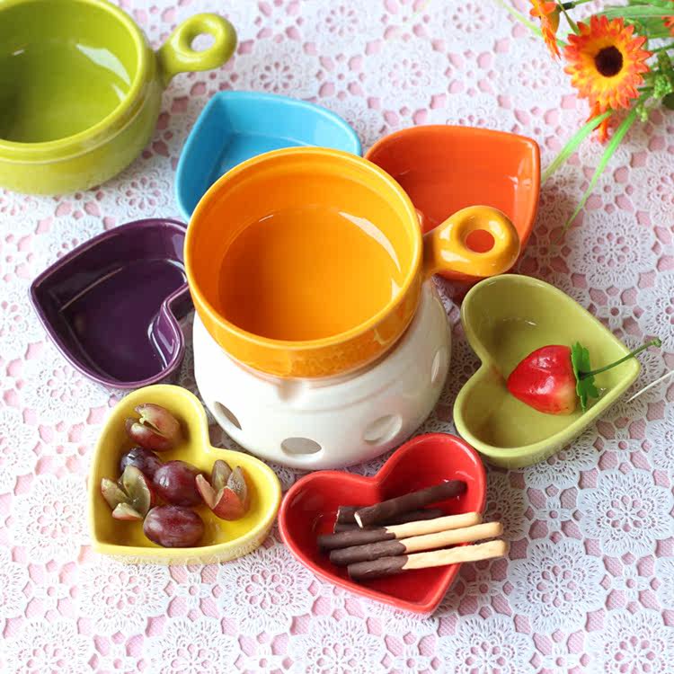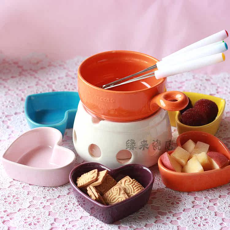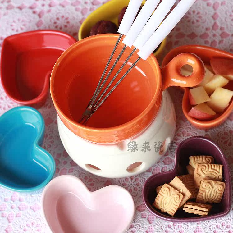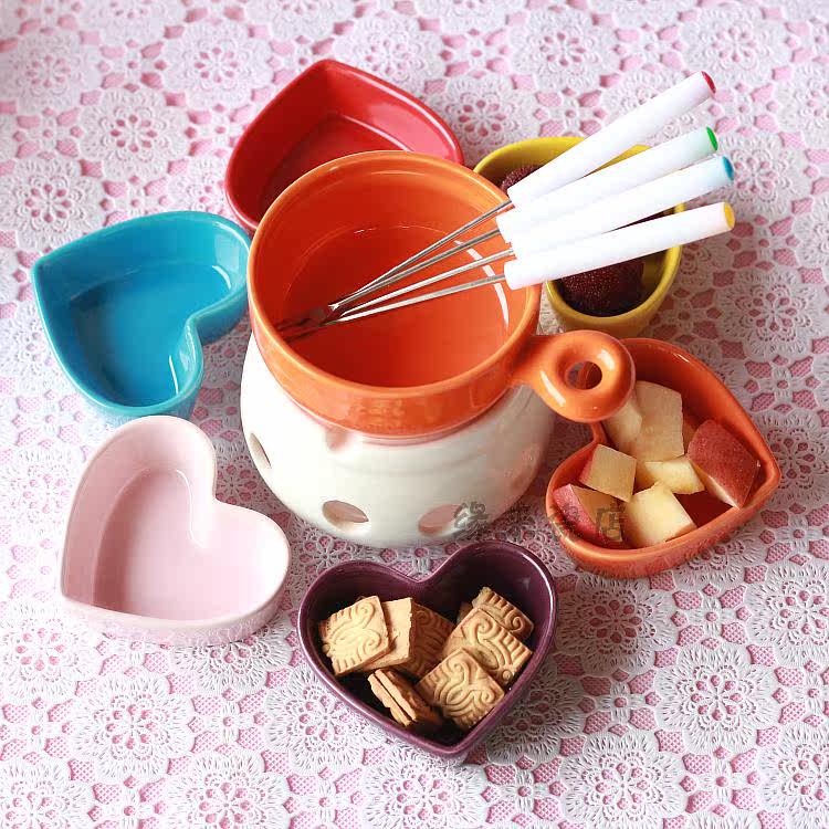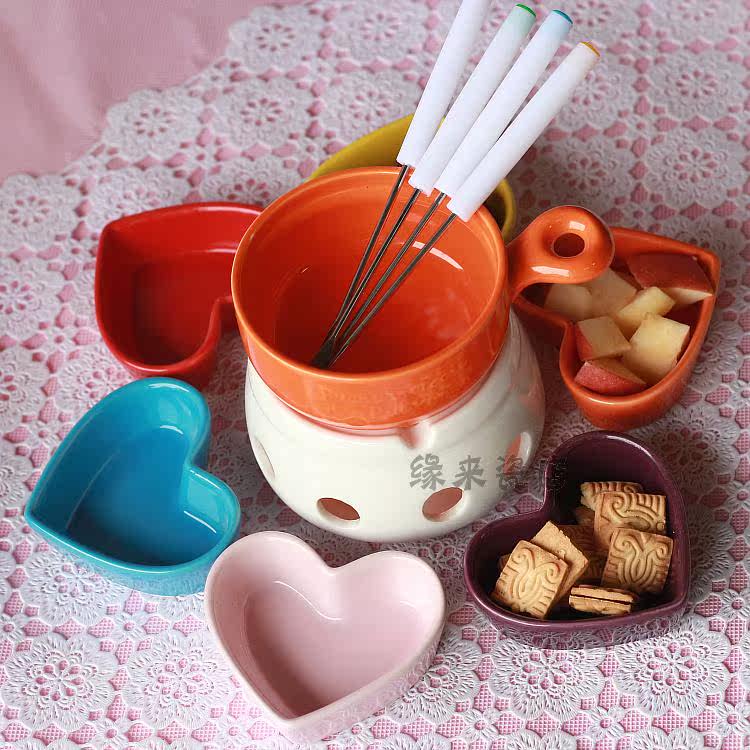 一套35元包括:中间火锅炉一套,桃心碟6个(默认颜色随机6个颜色),4把水果叉,2粒