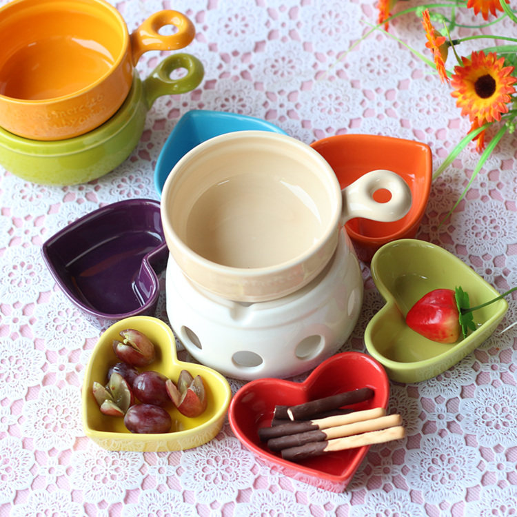源自于瑞士的甜品,在欧美、日本、台湾等地都已造成非常大的流行趋势,其做法很简单,将融化后的巧克力倒入陶瓷锅中,以小蜡烛持续保温,沾上各式甜点、水果,吐司,小方面包享用,是非常特殊的一道佳肴,适合各个年龄层食用,一般在西餐厅、咖啡店都是非常有人气而且很浪漫的一道餐点,甚至在家都可以DIY制作!