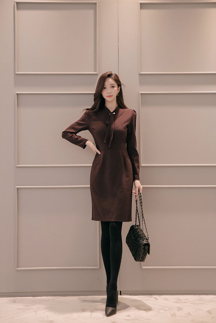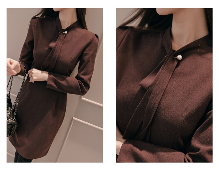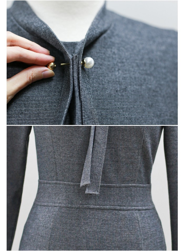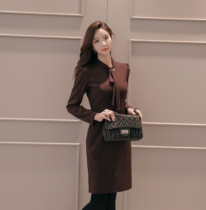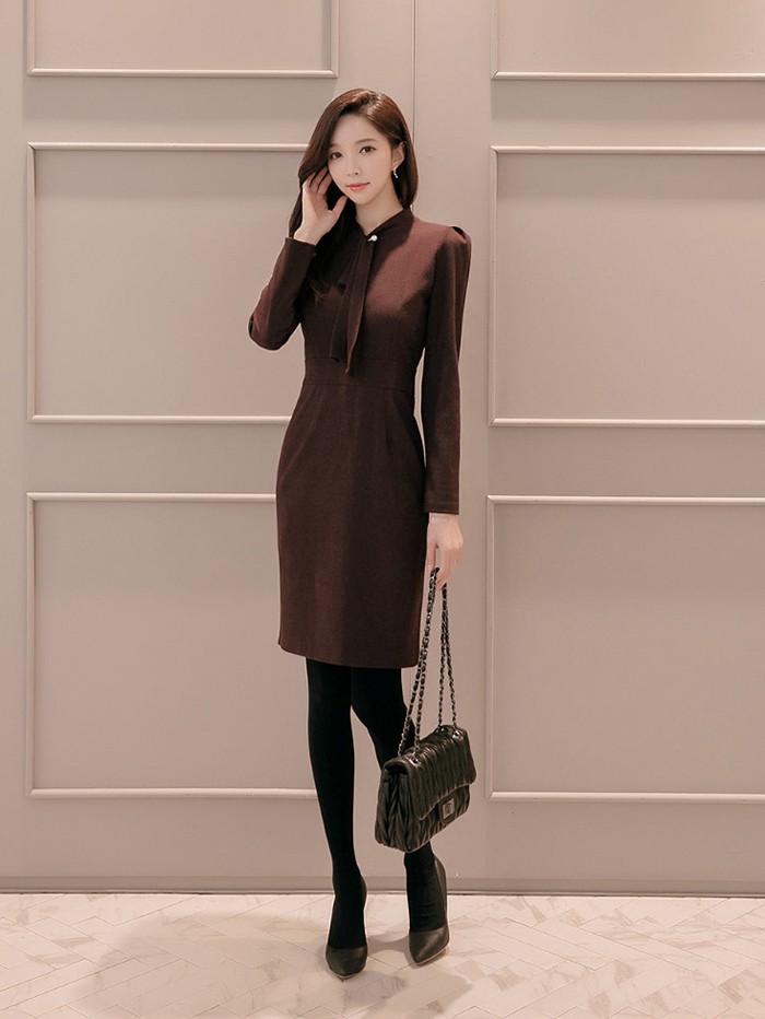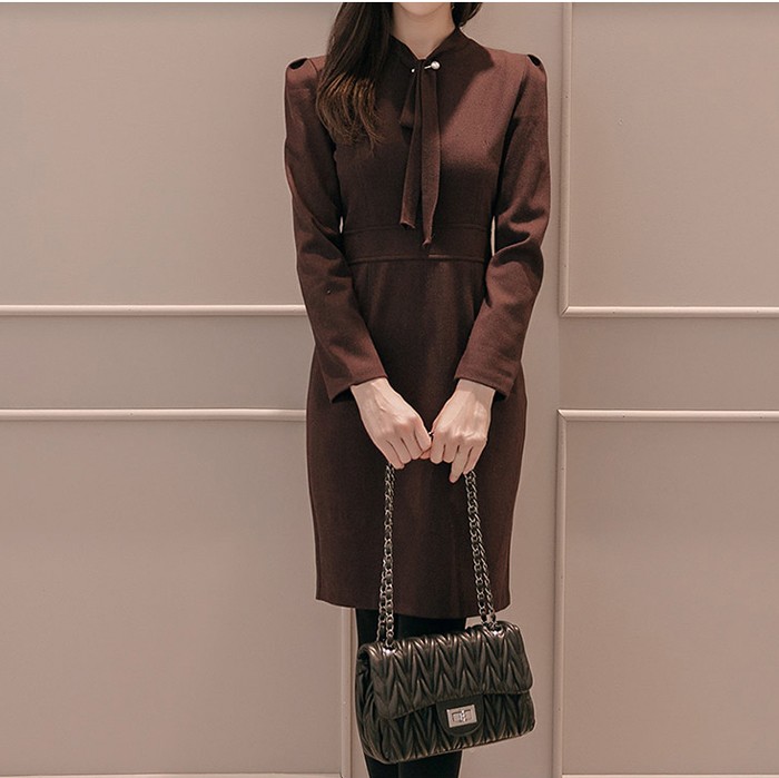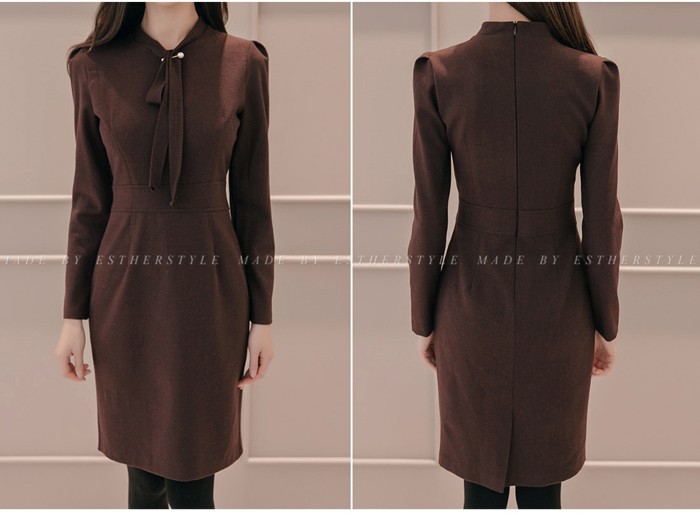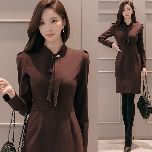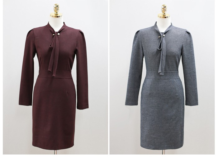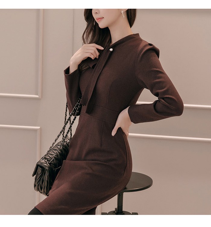 商品名:ワンピース タイトワンピース 膝丈 無地 長袖