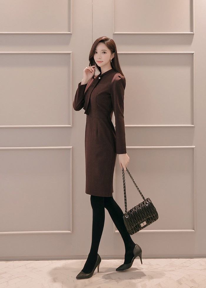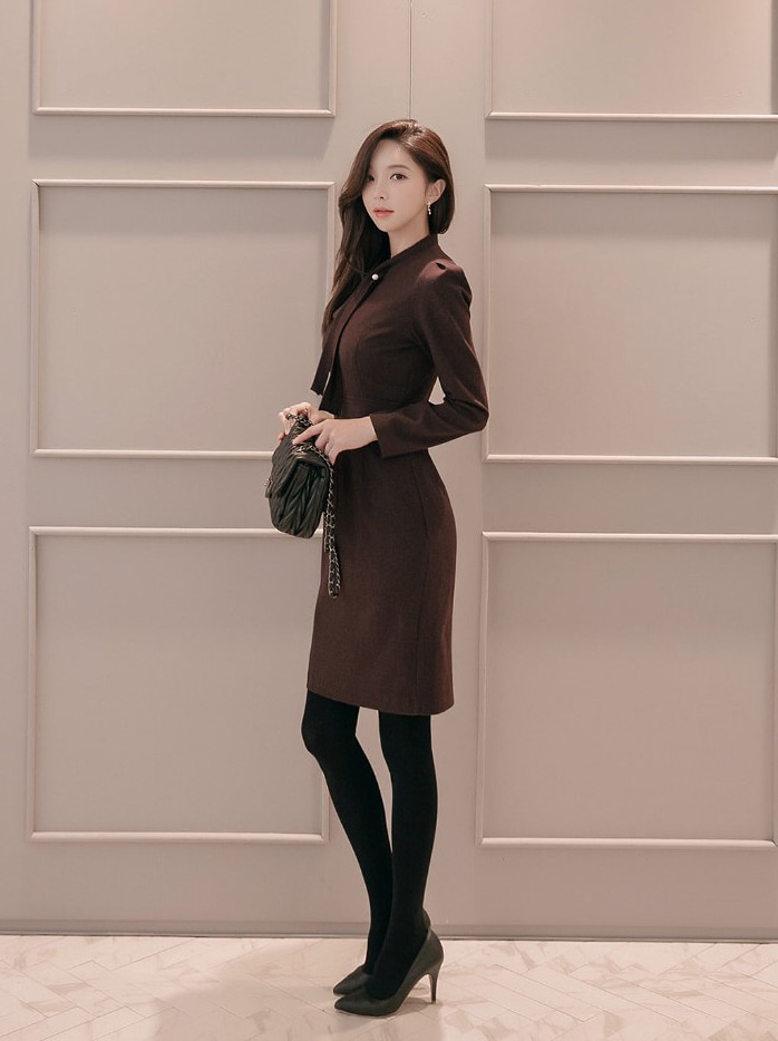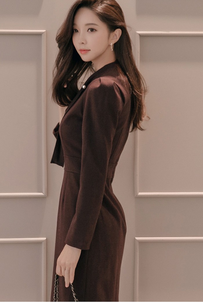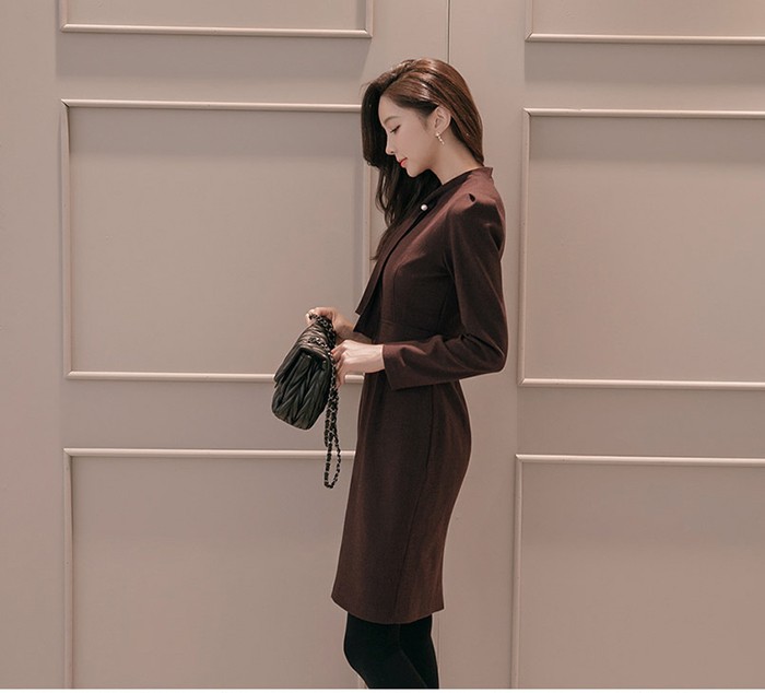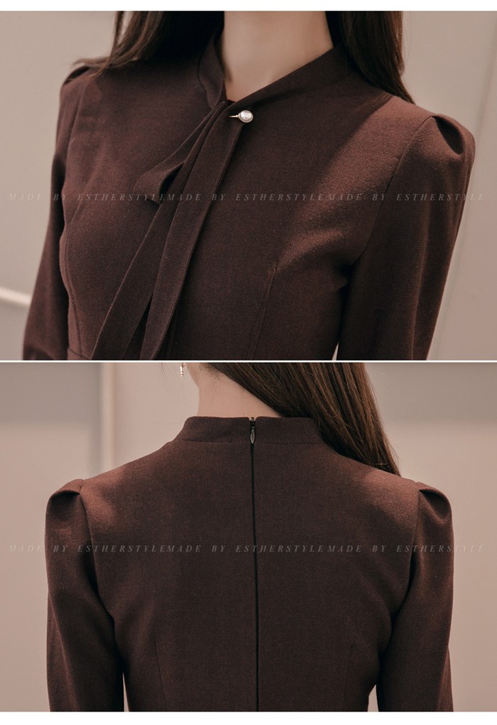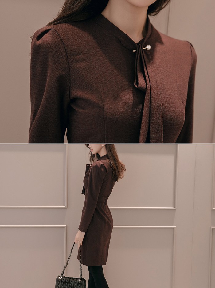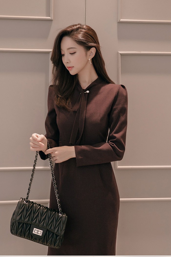 商品名:ワンピース タイトワンピース 膝丈 無地 長袖