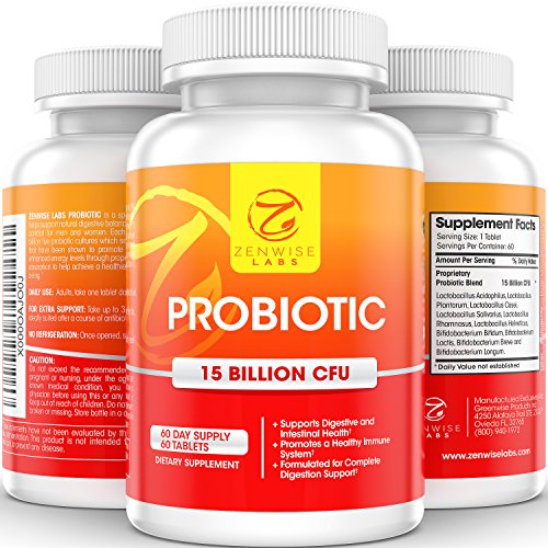 -. Binding : Health and Beauty -. Brand : Zenwise Labs -. Feature : FORMULATED WITH LACTOBACILLUS & BIFIDOBACTERIUM FOR OPTIMAL RESULTS: This powerful probiotic helps to ensure overall digestive health. It provides relief from stomach bloating, gas and irregularity while promoting better nutrient absorption. -. IsAdultProduct : 0 -. Label : Zenwise Health LLC -. Manufacturer : Zenwise Health LLC -. ProductGroup : Health and Beauty -. ProductTypeName : HEALTH_PERSONAL_CARE -. Publisher : Zenwise Health LLC -. Studio : Zenwise Health LLC -. Title : Probiotics for the Whole Family - Helps Improve Mood , Ease Digestive Discomfort and Promote Weight Loss - With 10 Strains of Probiotics and 15 Billion CFU - 60 Vegetarian Tablets