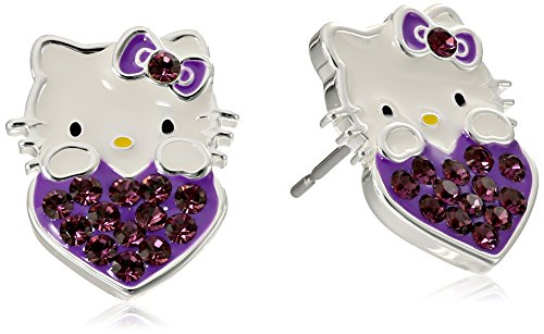 -. Feature : Hello Kitty stud earring in high-polished metal construction with crystal-embellished heart and bow / Imported