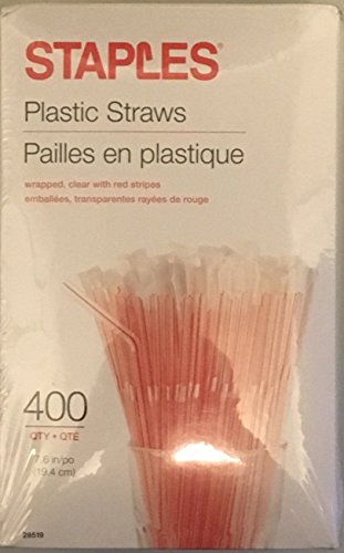 -. Title : Staples Plastic Flexible Straws, Individually Wrapped, 7.6 Inches, 400/box, Clear with Red Stripes