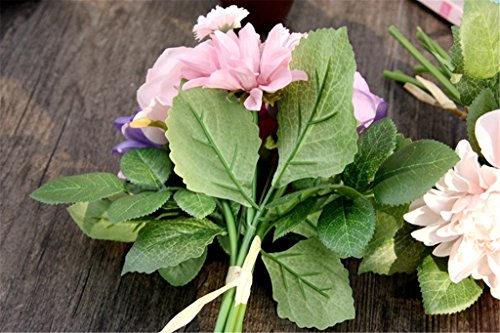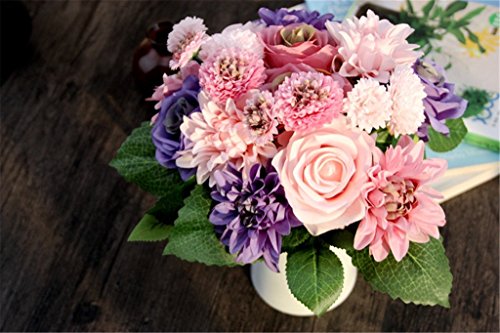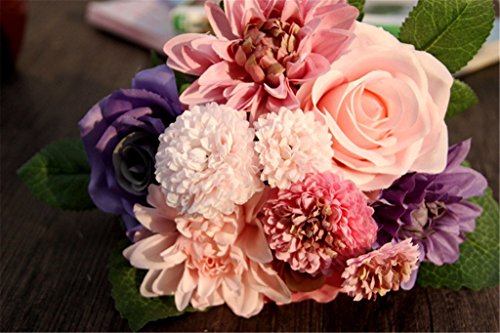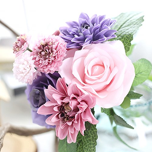 Meiliy 1 Bunch 8 Pcs Artificial Rose Dahlia Daisy Flower Bouquet Bride Bridesmaid Holding Flowers For Home Hotel Office Wedding Party Garden Craft Art Decor, Purple&Pink