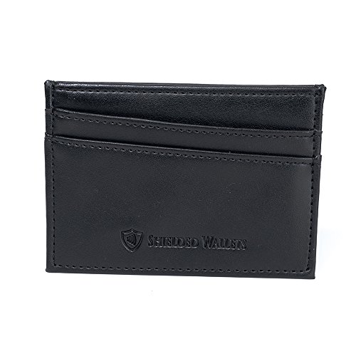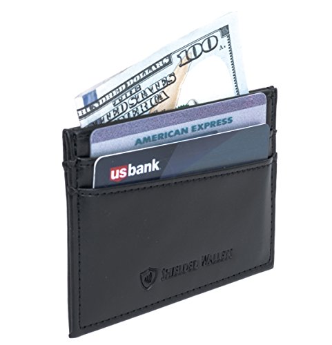 Men's Leather RFID Slim Wallet By Shielded Wallets Product Features: Measures 4" x 2 1/8" x 1/8" Genuine Cowhide Leather, DOUBLE the RFID Blocking Material, 1 ID Window, 2 Credit Card Slots, 1 Large Storage Pocket, Quality Workmanship MSRP: $29.99. Great every day wallet, perfect travel wallet for traveling and front or rear pocket storing.