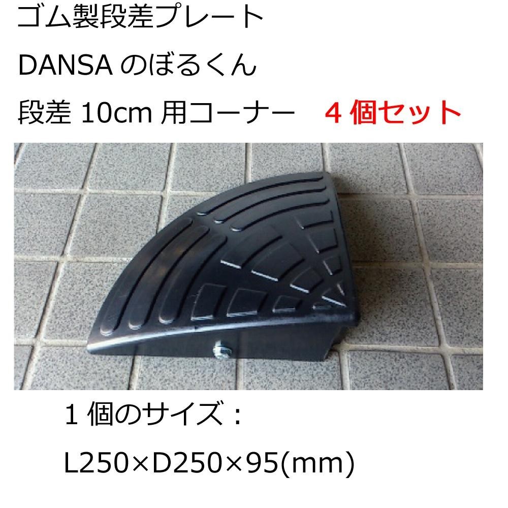 ゴム製段差プレートです。 製造国:ベトナム 素材・材質:ゴム ※サプライヤー直送品 ご注文後2~3営業日後の出荷となります【商品名】ゴム製段差プレート DANSAのぼるくん 段差10cm用コーナー 4個セット