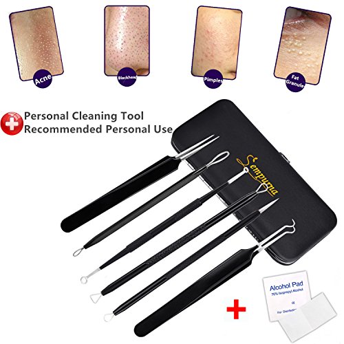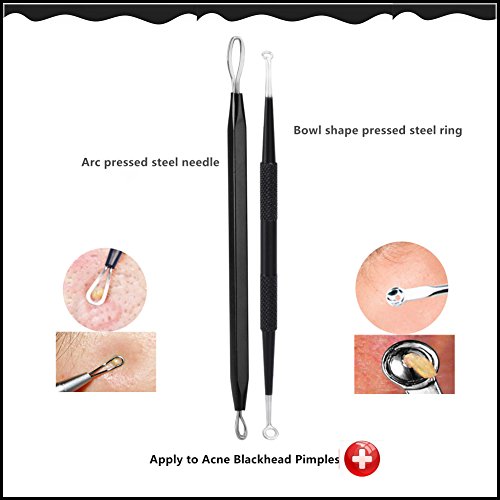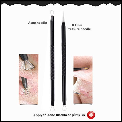 ❉FUCTIONCTIONAL KIT❉ Blackhead remover tools black beauty kit with 6 different sizes and angles for extract blackhead, whitehead, pimple, zit, acne, fat grains on your chin, cheek, forehead and nose