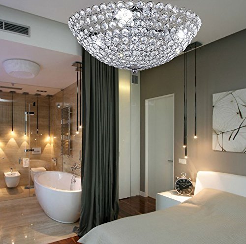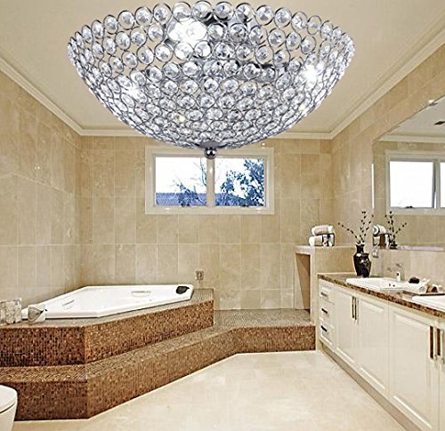 New Legend 3-light Bowl-shaped Chrome Finish Metal and Crystal Shade Crystal Chandelier Flush Mount Ceiling Light