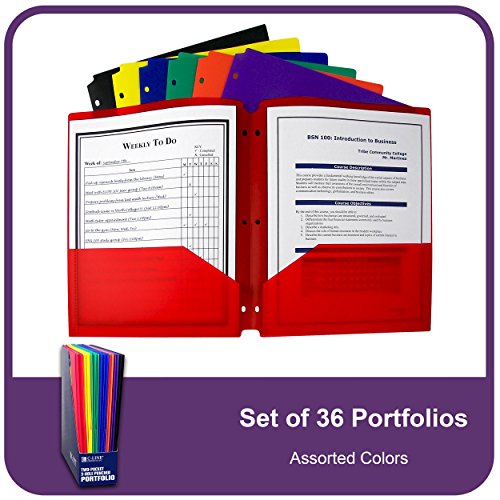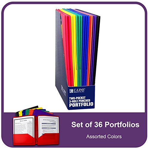 C-Line Two-Pocket Heavyweight Poly Portfolio with 3-Hole Punch, Assorted Colors, Box of 36 (33930)