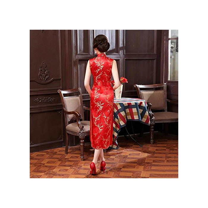 원본상품명: Black Omen (ブラックオ?メン) 光?あり 梅 ?色 刺? 袖なし ノ?スリ?ブ 襟元オ?プン カラ? マキシ丈 ロング チャイナ ドレス(レディ?ス、女性用)花柄 エナメル サテン パ?テ