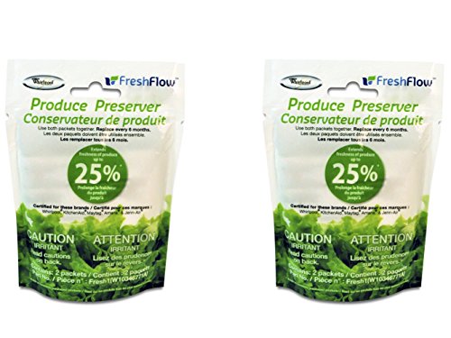 Studio : Whirlpool Publisher : Whirlpool Binding : Kitchen Product Description Whirlpool Freshflow Produce Preserver - W10346771A, 2-Pack (includes 2 packets with 2 pouches in each packet)Certified for Whirlpool, KitchenAid, Maytag, Amana, and Jenn-Air refrigeratorsProduce preserver absorbs ethylene allowing the ripening process of many produce items to slow down. As a results, certain produce items will stay fresh longer that are kept in your crisper drawer. It extends freshness of produce up to 25%. Packet contains two pouches which will be put in the housing in your crisper drawer. Packet also contains a status indicator to help you remember to change the pouches. Replace pouches and status indicator every six months for optimal freshness. Includes 2 preserver pouches, status indicator, and instructions Two produce preserver?pouches should be installed in?housing, which is located?along an interior side wall of the crisper or convertible drawer.Instructions for use: Remove both produce preserver pouches from packaging Lift up on the housing in order to remove from mounting tab along the wall Open the housing by pulling up and out on the back of the top of the housing Place both pouches inside the hosing, then snap the housing back together Place the housing back on the mounting tab along the wall Install and activate status indicator (timer) The disposable pouches should be replaced every 6 months, when the status indicator has completely changed from white to red. 0