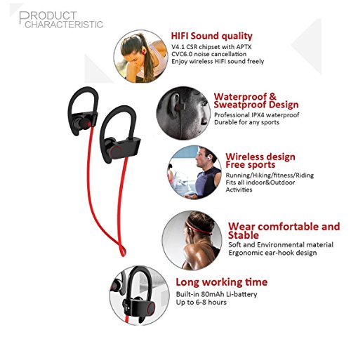 -. Title : JTD ® Premium Wireless Bluetooth 4.1 Headphones Noise Cancelling light-weight sweat proof Headphones with Microphone,Great for Sports,Running,Gym,Exercise-Wireless Bluetooth Earbuds Headset Earphones