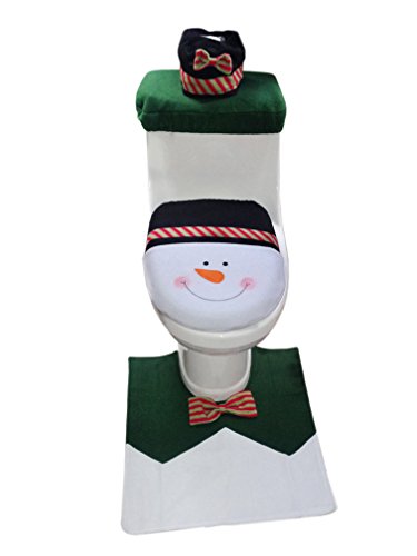 -. Brand : Pretty Moments -. Color : Green -. EAN : 6918894581021 -. Feature : Materials: Polyester / Suitable for normal toilet use / Package Includes: Toilet Seat Cover, Tank Cover, A Rug, Tissue Box Cover / Making your bathroom full of Holiday esmosphere and enjoy your time! -. Label : Pretty Moments -. Manufacturer : Pretty Moments -. ProductGroup : Home -. ProductTypeName : HOME_BED_AND_BATH -. Publisher : Pretty Moments -. Studio : Pretty Moments -. Title : Pretty Moments Christmas Snowman Toilet Seat Cover and Rug Set