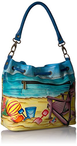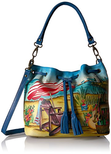 Anuschka Hand Painted Leather Drawstring Satchel