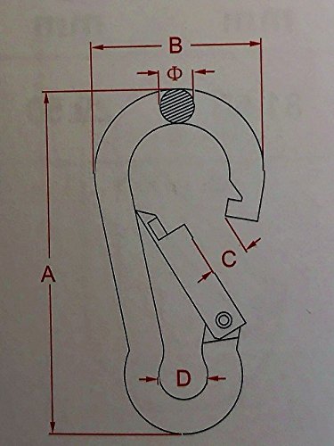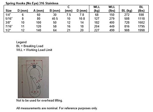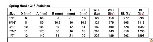 Stainless Steel 316 Spring Hook No Eye Carabiner 1/4" (6mm) Marine Grade